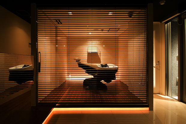 販売用ジュエリーを展示するショーケースをコンパクトに計画し、施術コーナーやエステルームなど主要導線上に配置することで、通常営業時はジュエリーディスプレイとして潜在顧客へのアプローチをサロン営業時間外は、展示販売する為のショーケースとして機能するよう試みている。 来客同士のプライバシーに配慮し、施術コーナーの仕切りは、ガラスパーテーションとし遮音と開放感(仕切る事での閉塞感の排除) を実現し、小さな空間ながら広がりを感じる空間を実現。